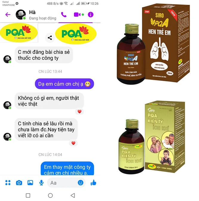 vượt hàng nghìn cây số ra Công ty Dược phẩm PQA để cám ơn Dược sĩ đã tư vấn đã giúp cô hết bệnh hen suyễn lâu năm của mình