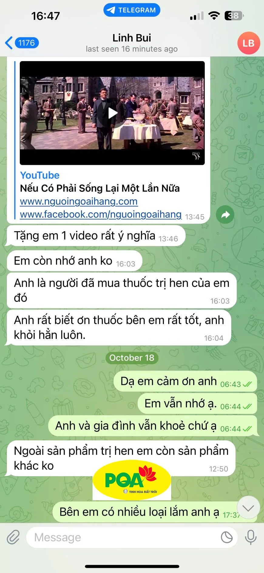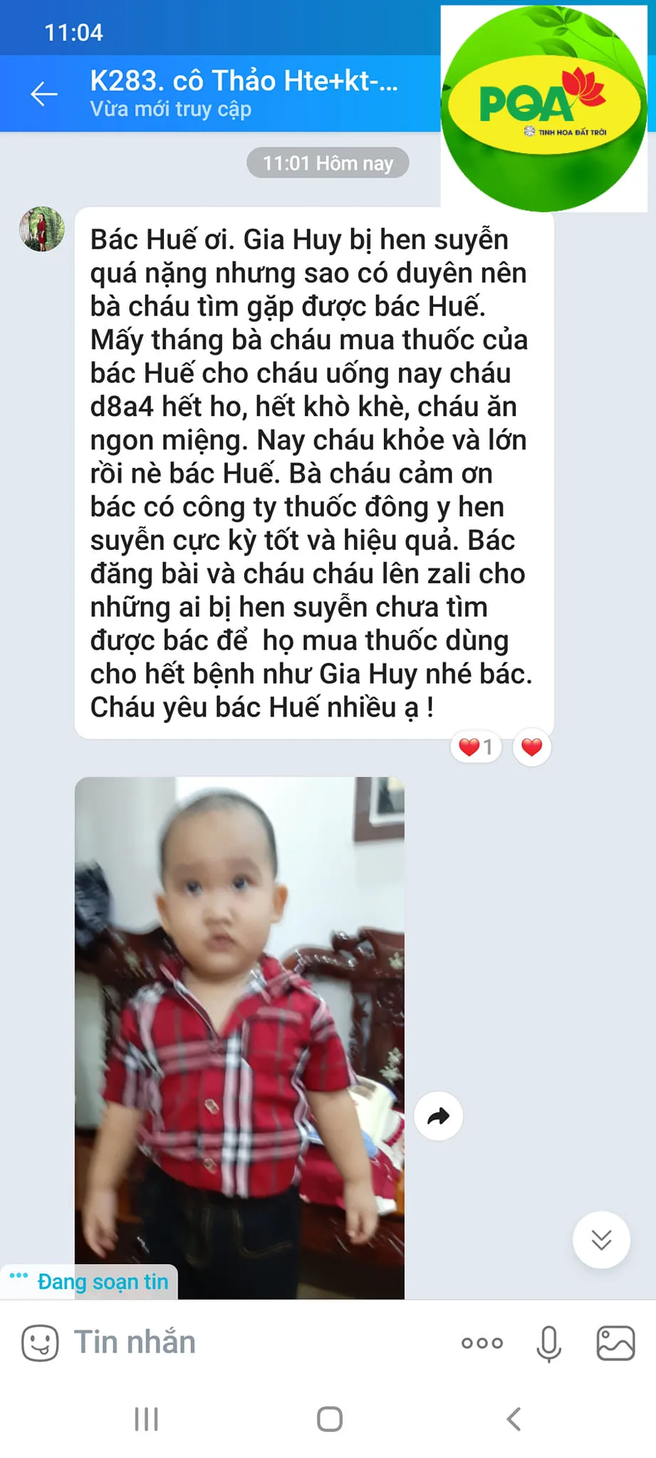 + Video chia sẻ của bác Minh ở quảng ngãi sử dụng sản phẩm Cốm Hen Suyễn PQA đã hết bệnh.