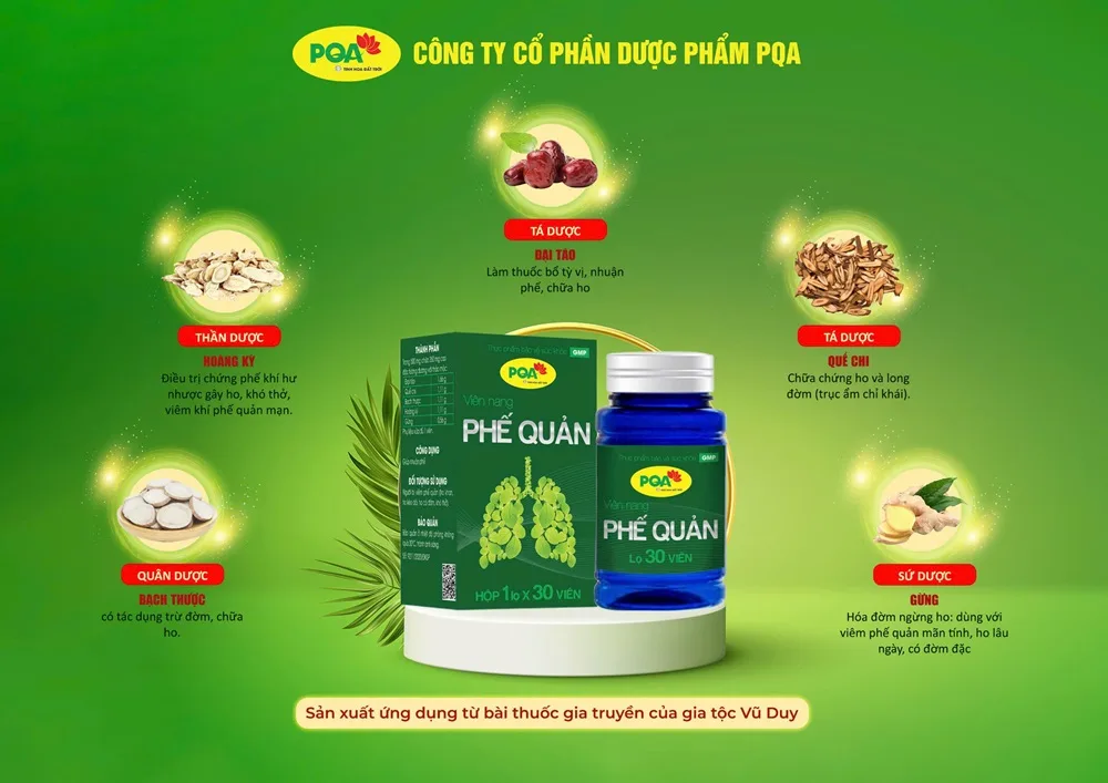 PQA viên nang phế quản giúp nhuận phế. Nên dùng PQA Phế quản cho người bị viêm phế quản, ho khan, ho có đờm, ho kéo dài, khó thở.